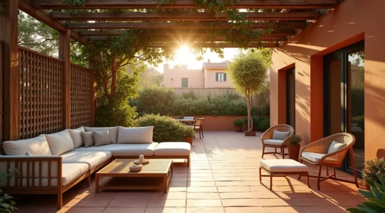En cuanto al estilo, la coherencia con la arquitectura de tu vivienda creará una transición visual armoniosa. Una casa de campo con acabados rústicos puede acoger muebles de madera maciza y hierro forjado, mientras que un apartamento contemporáneo quedará mejor con líneas minimalistas y materiales como el aluminio lacado en tonos neutros. Recuerda que los cojines y textiles son el modo más sencillo y económico de actualizar el estilo cada temporada.